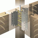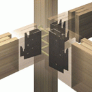 - 木造軸組の「継ぎ手」「仕口」部分(アリ・カマ・ホゾ等)と呼ばれる切り欠きなどをアゴ掛け金具・ホゾパイプなどの金具に置き換え、ボルトとドリフトピンで緊結する接合金物。